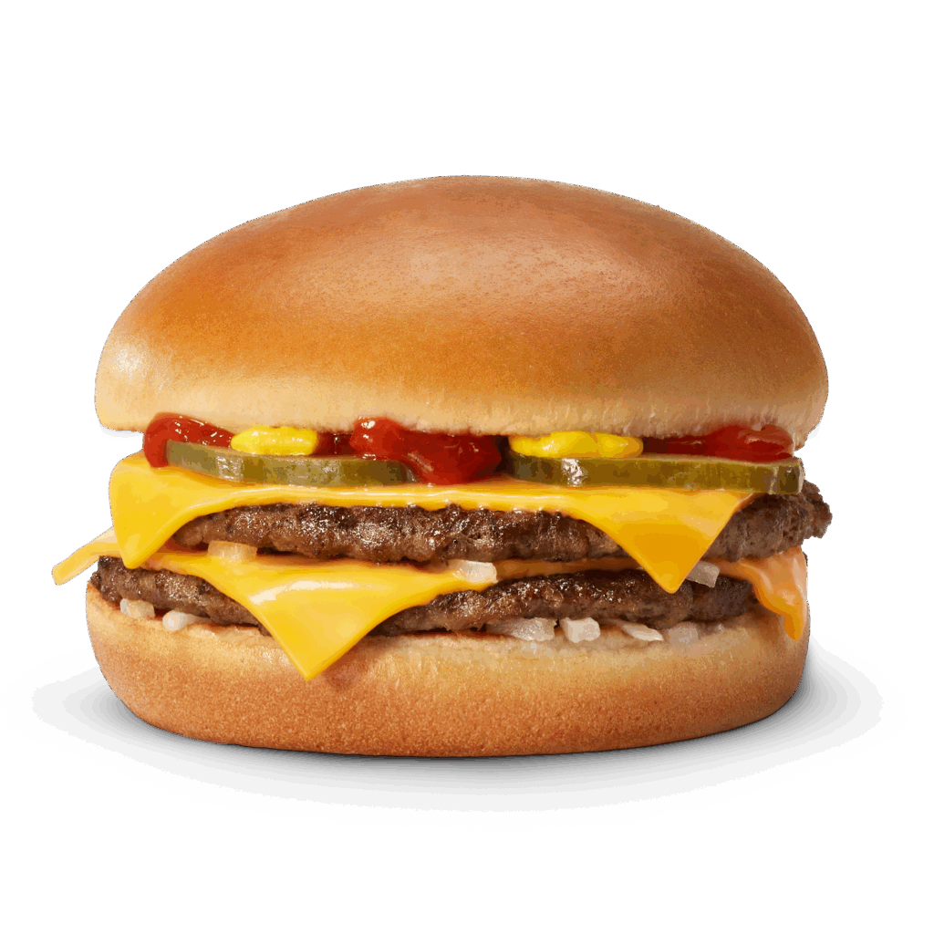 02 Steaak hachés, 2 cheddar fromages, sauce maison, tomates, cornichons, laitue, oignons